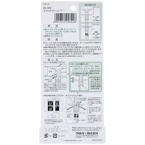 【送料無料】スライドゲージ T 印つけ 手芸 裁縫 クロバー - メール便発送