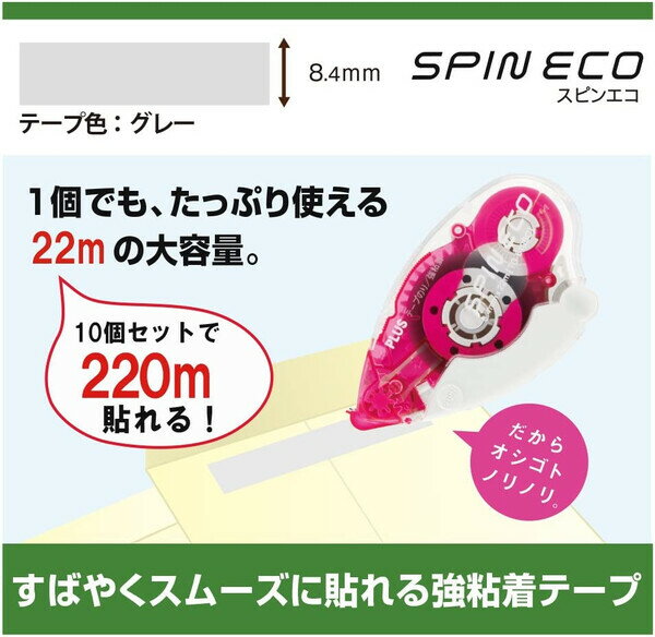 商品名まとめ買い プラス テープのり スピンエコ 交換テープ 8.4 強粘着 ピンク 37-578 10個セット説明たっぷり使えてエコロジーなテープのり「スピンエコ」交換テープです。【糊性能】強粘着【テープ幅】8.4【テープ長さ】22m【カラー】ピンク【糊カラー】クリア外形寸法:W81×D18×H42 ※本製品のみでの使用はできません。本体(別売)と一緒にご利用下さい。※カラーコピーなど、オイルの付着した紙等への使用は、のりが付きにくい為適しません。室温15℃~35℃の範囲でご使用下さい。品番TG-611BC_SET10この商品について 必ずご確認ください配送についてメール便での配送になります。→ご利用の際は必ずお読みください 送料について ご注文合計額が¥1000 (税込)以上で、全国一律『送料無料』です。 →詳細はこちら返品→返品・交換・キャンセルについて※メール便は、日時指定、代金引換、ギフトラッピング・熨斗サービスに対応しておりません。
