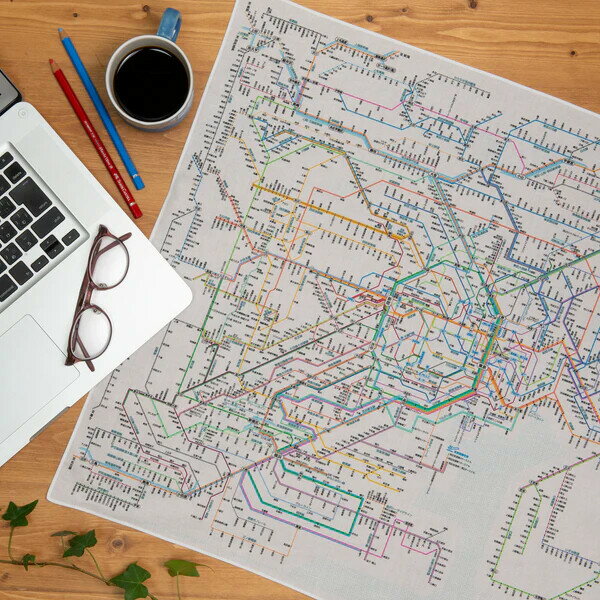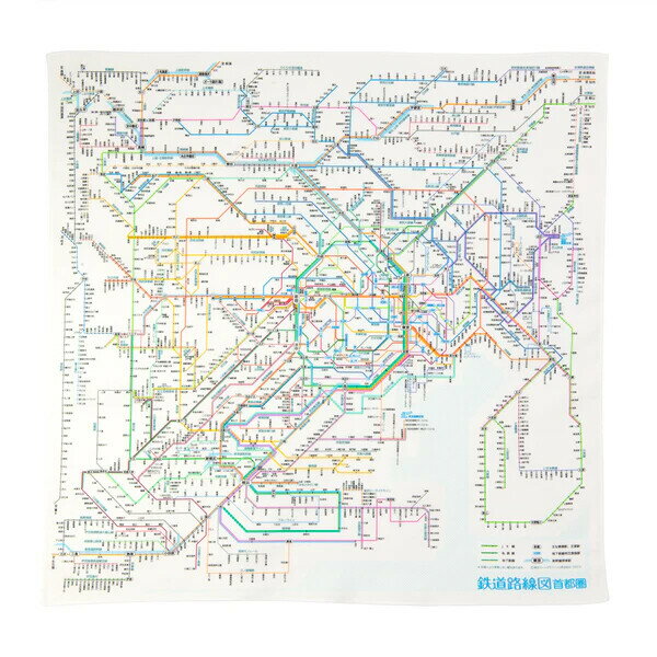 【送料無料】鉄道路線図 ハンカチ 首都圏 綿100% 関東地方周辺 JR 私鉄 地下鉄 モノレール 子供 大人 ランチクロス 東京カートグラフィック - メール便発送
