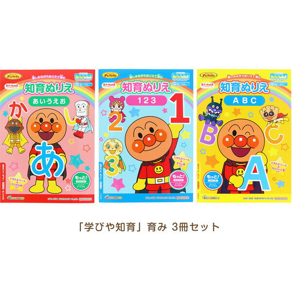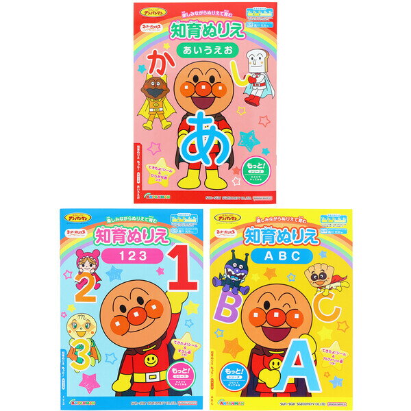 【送料無料】【3冊セット】 それいけ!アンパンマン 知育ぬりえ 学びや知育 B5 2歳/3歳 ひらがな/数字/ABC シール付 子育て サンスター文具 - メール便発送