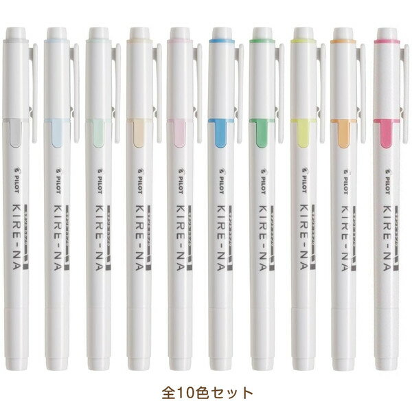【送料無料】【全10色セット】 蛍光ペン KIRE-NA キレーナ ツインタイプ 水性 速乾 にじみにくい 汚れにくい ノート 勉強 パイロット - メール便発送