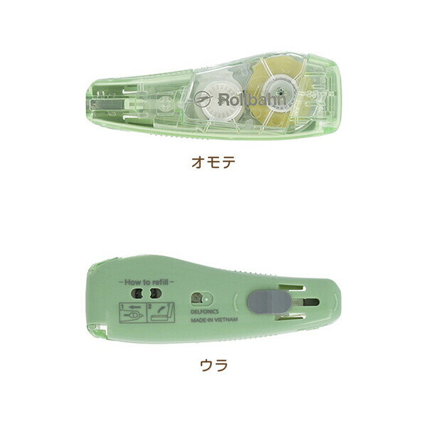 商品名ロルバーン専用 クリーム色 修正テープ 交換式 リフィルセット ライトパープル 幅4mm×6m巻 メモ 手帳 デルフォニックス説明デルフォニックスの定番「ロルバーン」の紙色♪リフィル交換が可能な、クリーム色の「修正テープ」と交換用「リフィル」のお得なセットです。修正箇所が目立ちにくく、よりロルバーンを楽しめるアイテムです。テープ幅は4mmなので、5mm方眼のロルバーンに合わせて、罫線を消さずに修正できます。ペンケースにも収まるミニサイズながら、6m分のテープを搭載しています。使用する際は、本体背面のスライドノブをカチッと音がするまで前方にスライドさせ、ヘッドをだして引き出します。テープを交換する際は、スライドノブを動かしてヘッドを収納してから、側面の「PUSH」ボタンの両側を押してケースを開き、使用済みテープと新しい交換テープを入れ替えます。新しい交換テープは裏面のストッパーを外し、はめ込み位置に注意しながらセット。カチッと音がするまでしっかりと閉じて交換完了です。「ロルバーン ポケット付メモ」「ロルバーン フレキシブル」「ロルバーンノート」「ロルバーン ノートパッド」「ロルバーンダイアリー」と、すべてのロルバーンシリーズで使用できます。【セット内容】修正テープ+リフィル【サイズ】本体=約W75×H26×D22mm、パッケージ=約W65×H150×D23mm【テープ】幅4mm×6m巻【材 質】ABS、GPPS、POM、HIPS【仕 様】リフィル交換式【リフィル】ロルバーン 修正テープ 交換用リフィル (501164-709)【生産国】ベトナム【ご注意】※テープはすべてクリーム色です。※ヘッドのローラー部分に付着物があるとテープがきれいに密着しにくい状態になります。 その場合は付着物を取り除いてからお使いください。※ヘッドのローラーは摩擦により消耗するため、交換テープを10本ほどお使いいただいた後は本体を新しいものに交換してください。※曲線や蛇行させて引くと故障の原因になりますのでまっすぐ引いてお使いください。品番501165 440この商品について 必ずご確認ください配送についてメール便での配送になります。→ご利用の際は必ずお読みください 送料について ご注文合計額が¥1000 (税込)以上で、全国一律『送料無料』です。 →詳細はこちら返品→返品・交換・キャンセルについて※メール便は、日時指定、代金引換、ギフトラッピング・熨斗サービスに対応しておりません。