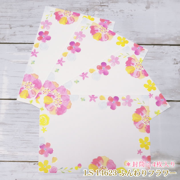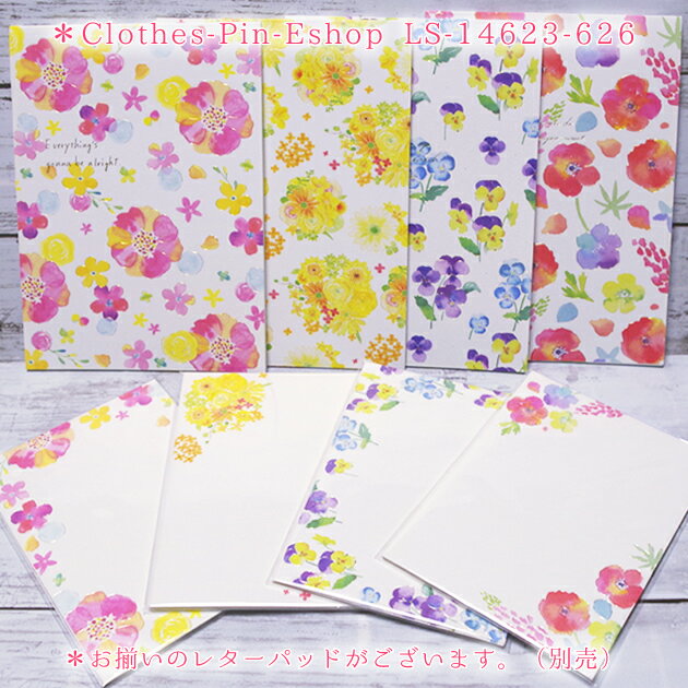 【メーカー公式/クローズピン】naminami land・ナミナミ 封筒4枚入 水彩タッチ・おしゃれ・大人 (ふんわりフラワー・イエローフラワー・パンジー・アネモネとルピナス) 手紙 封筒 ふうとう envelope てがみ