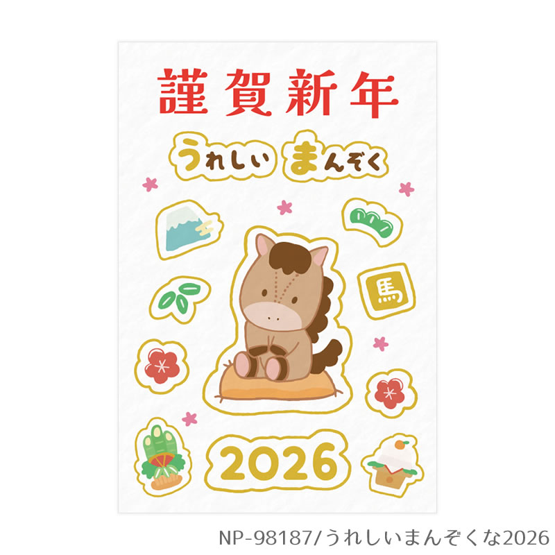 【新着・2025年11月発売】年賀はがき 3枚入り 金箔入り 私製年賀ポストカード 2026年(令和8年)午年 うま イラスト かわいい おしゃれ 大人向け 元旦 挨拶状 干支 年賀状【メーカー公式/クローズピン】