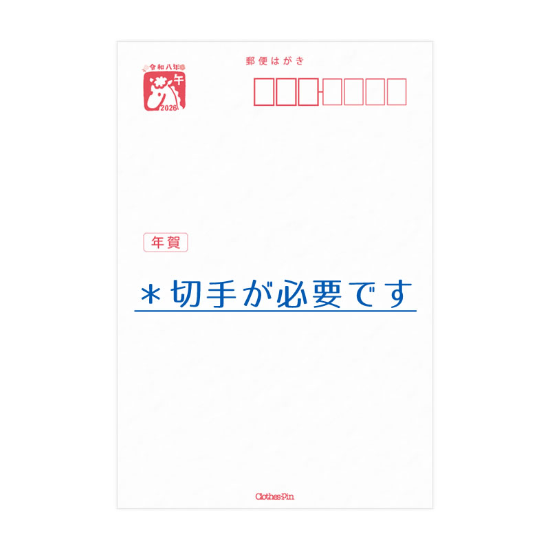 2026年(令和8年)の干支「午(うま)」をテーマにした、 かわいらしく華やかな年賀はがき3枚セットです。 イラスト部分には上品な 金箔加工 を施し、新年のご挨拶を より特別な印象に仕上げます。 同じ柄が3枚入っているため、家族・友人・仕事関係など 幅広い相手に使いやすいセットです。私製はがきのため、 切手を貼ってそのままお使いいただけます。新年のスタートを 華やかに彩る、クローズピン公式デザインの年賀状です。 【2026年(令和8年)・午(うま)年デザイン】 かわいくて大人でも使いやすいイラスト。 【華やかな金箔加工入り】 特別感のある仕上がりで、新年のご挨拶に最適。 【同柄3枚セット】 プライベートにもビジネスにも使いやすい構成。 【私製はがき仕様】 切手を貼って投函できる一般はがきサイズ(100×148mm)。 【仕様】 ●サイズ:100×148mm(一般はがきサイズ) ●加工:金箔入り ●内容:同柄3枚入り ●種類:私製年賀はがき(切手貼付が必要) 【注意事項】 ※ こちらの商品は 私製はがき です。 投函の際は切手を貼ってご利用ください。