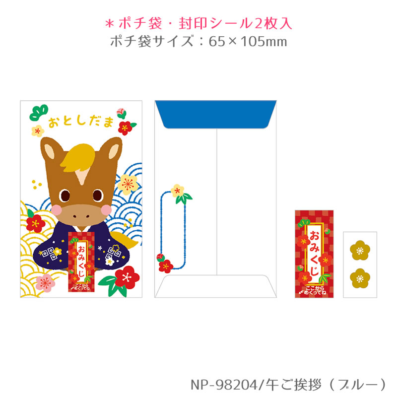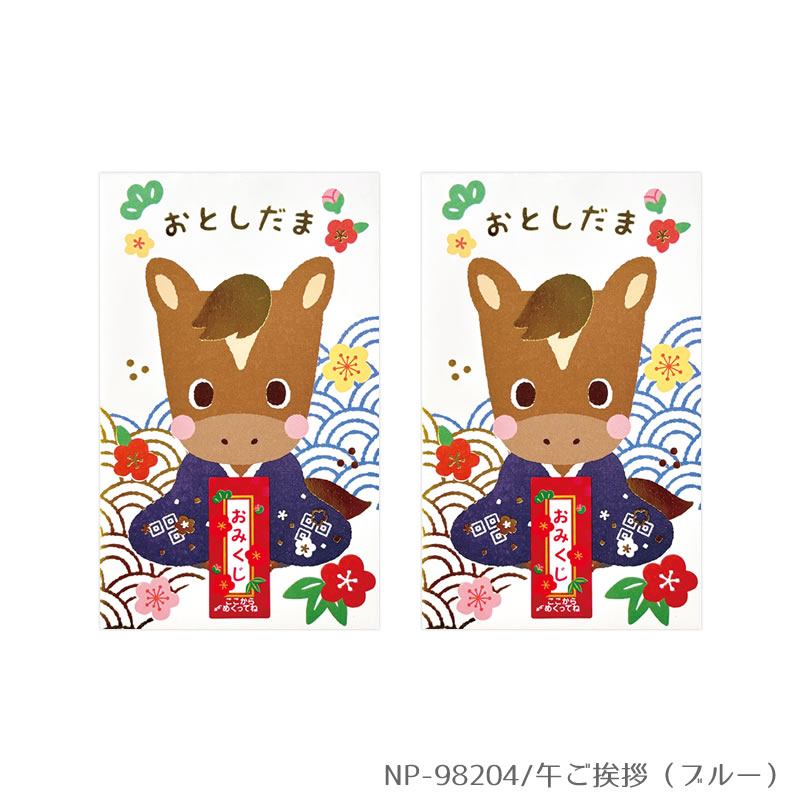 【新着・2025年11月発売】おみくじお年玉袋・年賀ポチ袋 2枚入り おみくじシール付き・金箔入り ゴールド 午年(うま)かわいい イラスト お正月 お祝い 三つ折り札対応 封印シール付き【メーカー公式/クローズピン】
