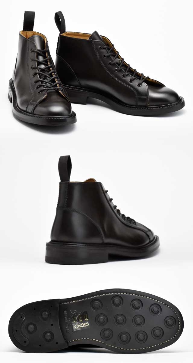 TRICKERS / トリッカーズ 靴作りの名人ジョセフ・トリッカーによって、1829年 R.E.Tricker Ltd が設立される。 現在、五代目に受け継がれているトリッカーズは、英国靴製造のメッカであるイギリスのノーザンプトンに現存する最古のシューメーカーである。 プリンス・オブ・ウェールズ(チャールズ皇太子)より授かった王室御用達を意味するロイヤル・ワラントが掲げられたセント・ミッシェル通りにある工場では、180年間にわたり当時からの変わらぬ伝統的な技法を用いながら、職人たちの手仕事によって生産され続けている。 【TRICKERS/トリッカーズ】一覧はこちら 送料について <送料無料の場合>北海道・一部離島沖縄 900円(税込)1,200円(税込) 送料の詳細はこちらブランド TRICKER'S/ トリッカーズ 商品名 MONKEY BOOTS 素材/スペック LEATHER : カーフレザー (本革) SOLE :ダイナイトソール 英国のダイナイト社の作るラバーソール、通称「ダイナイトソール」を使用。 滑り止めの役目を果たす丸い突起があしらわれたラバー製のソールで実用性と見た目のバランスの良いソールです。レザーソールのようにスマートなのに、雨天時でも気兼ねなくガンガン履ける優れた耐久性が自慢です。 ワイズ表記 : 5 生産国 : ENGLAND サイズ選びの目安 こちらはカントリーブーツ『M2508』に比べやや小さく、スニーカーに近いサイズ感となりますので、標準〜細めの方は-0.5cm、幅広甲高の方はスニーカーサイズがお勧めです。※こちらは"7 HOLE"になります。 商品説明 【TRICKER'S MONKEY BOOTS】 カントリーブーツと並ぶ人気のレースアップブーツがこのモンキーブーツです。デビーブーツとも呼ばれており、外羽根がトゥボックスまで伸びたデザインが特徴です。グッドイヤーウェルト製法による頑強な作りとは裏腹に、歩きやすさ・履き心地は抜群です!またアウトソールにはヨーロッパの高級な革靴にだけ使用されるダイナイトソールを使用し、見た目のエレガントさはそのままに実用性・機能性も兼ね備えた使える一足です。 ▼注意▼ 当商品は【平行輸入品(海外正規品)】となります。製品の制作工程上でのオイルシミによります色ムラやボンド接着跡、縫製の際の"シワ"や"キズ"等がある場合もございますが、これらは不良品ではなく、製造上やむを得ないものとなります。 着用に支障の無い傷や輸入による箱のつぶれ、多少の汚れもご了承下さいませ。これは当商品の風合いの範囲内ですので完璧な商品をお求めの方には不向きな商品です。 ご注意点 ※新品ですが一部箱が破損している場合が御座います。 ※細かなキズや型抜き跡などが見られる場合があります。 ※実物とパソコンモニター画面では、見た目の色に多少違いがある場合が御座います。 ※輸送上の都合等により商品に多少の汚れや傷などが付いている場合がございます。 上記の点を予めご了承のうえご注文いただきますようお願いいたします。 VALET BOX TRAVEL KIT SHOE TREE POLISH BRUSHES