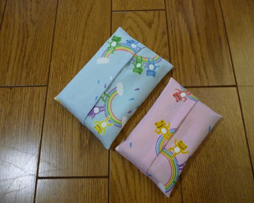 【ハンドメイド 日本製】ポケットティッシュケース (ミニサイズ)3種 ウキウキ!レインボーカエルちゃん (3種)【保育園 小学校 女の子 男の子 入園 入学 習い事 】