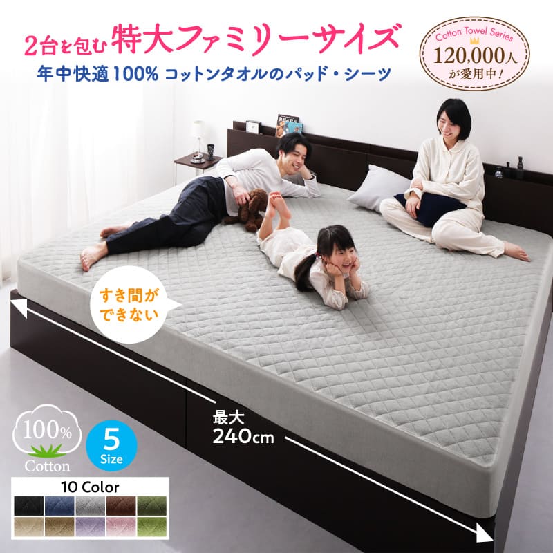 【最大3,000円OFFクーポン有!PT3倍!ブラックフライデー】ボックスシーツ シーツ ベッドカバー タオル コットン 綿100 春 夏 秋 冬 洗える 吸水 速乾 おしゃれ タオル地 ファミリー 2台を包むファミリーサイズ 年中快適100%コットンタオルのパッド・シーツシリーズ ベ