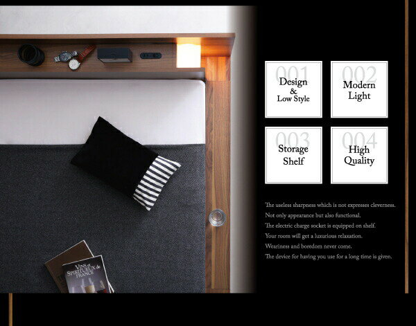 【最大3,000円OFFクーポン有!PT3倍!スーパーSALE】モダンライト・コンセント付きローベッド プレミアムポケットコイルマットレス付き セミダブル