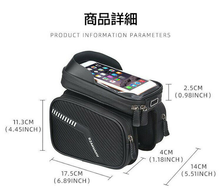 商品名 送料無料 フレームバッグ サイクルバッグ 自転車バッグ フロントバッグ 小物収納 防撥水 便利 自転車 大容量収納 簡単装着 サイクリング メッシュポケット スマホ収納 自転車用品 アウトドア 梱包内容 自転車バッグ×1 素材 ポリエステル 適用範囲 自転車 カラー ブラック 特徴 フレームのトップチューブのスペースを活かす設計。日常の必需品、サイクリングツール、アクセサリーの収納に最適です。 防塵・耐久性を兼ね備えています。 サイクリング、旅行、通勤、通学、アウトドアなどにオススメのフレームバッグです。 【商品品質】 商品の管理・品質については万全を期しておりますが、万一ご注文と異なる商品・不良品が届いた場合は 商品到着後7日以内にお問い合わせフォームにてお名前・受注番号などをご記入の上、ご連絡頂いた場合のみ対応となります。 注意 ※対応機種により細部デザインが異なります。 ※端末本体(スマホ、タブレットPC、ノートPC、キーボード、ペンシルなど)は含まれておりません。 ※画像はイメージであり、商品の仕様は予告なく変更される場合がありますので予めご了承ください。 ※掲載の商品画像と実際の色は室内、室外での撮影、モニターの表示により若干異なる場合がありますので、ご了承くださいませ。 ※画像は一例となります。購入前に必ずお手持ちの機種をご確認ください。 ※取付は自己責任でお願いします。自転車バッグ 小物収納 簡単装着