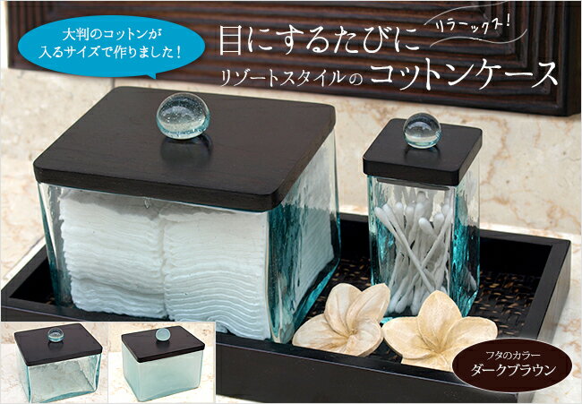 商品説明 大人気のガラスと木(チーク)の組み合わせでリゾート感いっぱいのコットンケースに、大判のコットンが入るサイズが登場です。 お客様からの「大判のコットンを入れたい」というご要望にお答えして、サイズを調整して作りました! ガラスはフロストタイプ(曇りガラス)とノーマルタイプ(透明)の2種類ありますので、用途やお好みに合わせてお選びいただけます。 【ノーマルタイプ】 清潔感のある印象で、中身が分かりやすく、光を通すのでキラキラとして、バリガラスの色合いを楽しみたい方におすすめです。 【フロストタイプ】 涼しげな印象で、中に入れたモノが見えにくいので、生活感を出したくないモノを収納するのにおすすめです。 綿棒も横向きでたくさん入るので、綿棒ケースとしてもおすすめです。 憧れの極上リゾートホテルの非日常感を演出してくれるアイテムです。 サイズ 縦:11cm 横:14cm 高さ:13cm 素材 ガラス、チーク 生産地 バリ島 関連情報 バリ雑貨、バリ島、アジアン雑貨、ハンドメイド、手作り、アジアンテイスト、リゾートホテル、アメニティケース お部屋、バリ風、お洒落 かわいい、モダン、デザイン、コットンボックス、洗面所、大判 海 マリン ビーチ アイテム 西海岸 インテリア 雑貨 おしゃれ澄んだ空とどこまでも広がるエメラルドブルーの海。 南国リゾートならではの解放感と人々の温かさ。 そんなバリのリラックスした雰囲気を お部屋でも堪能できたら素敵ですね。 ガラスと木(チーク)を組み合わせたコットンケースは ほっとする優しい佇まいで、バリを思わせます。 毎日使うアメニティグッズや髪留め、シュシュなどのアクセサリーを収納すれば、 洗面所で、極上リゾートホテルの非日常感が味わえます。 木製のフタだから割れにくい フタが木製なので、もし落としたりしても割れにくく、開閉時、ガラスの本体と接触するときも音が気になりません 片手で開閉できてストレスなし かちっと閉まる密閉タイプのふただと本体を片手でおさえ、もう片方の手でふたを開け閉めしないといけませんがのせるタイプのふたなので、片手で楽に開閉できます。裏側にズレ止めがついているため、スライドして落ちてしまうことはありません。 ■いいです! しっかりしてるし可愛いです。とってもオシャレです☆ 対応も早くて丁寧! 注意事項 こちらのコットンケースや綿棒スタンドのシリーズは、商品の特性上、フタが本体にピッタリとははまりません。 下記の写真のようにフタがずれる状態は不良ではありませんので、あらかじめご了承ください。 ガラス製品の特性としまして、使用上は特に問題ございませんが、写真のような白い砂などが入っている場合がございます。予めご了承の上、ご注文をお願い致します。 ※白い箇所が複数ある場合や、目立つものは、程度によって通常販売から外しています。 ガラス製品の特性上、気泡があったり、黒い点などがある場合がございますが、ご了承ください。 職人によるハンドメイドのため、サイズや形などが多少異なることがございます。 同じ商品でも部分によって色合いが若干違うところがございますが、ご了承ください。