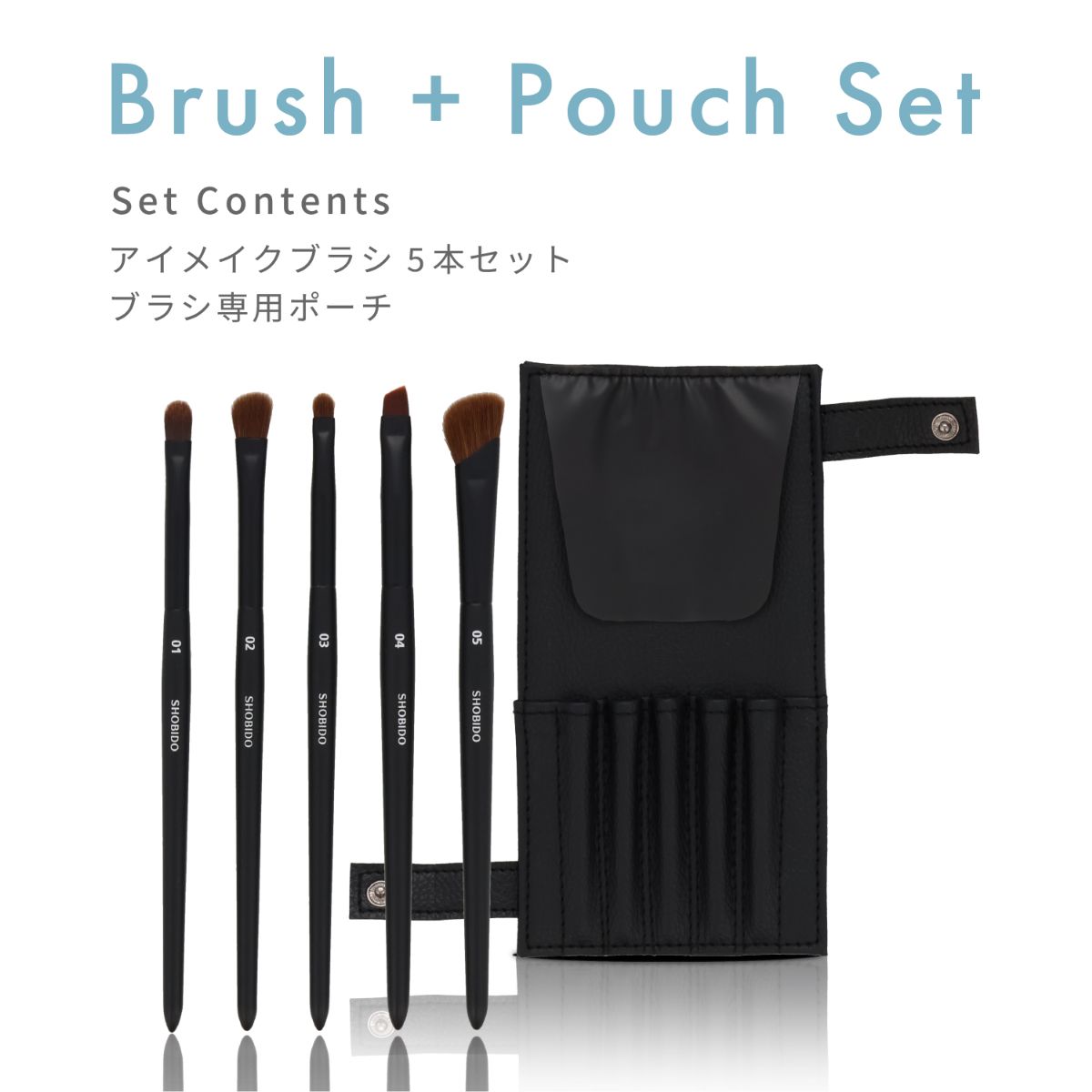 サラさんコラボ スタメンブラシセット 専用ポーチ付きブラシ5本セット 粧美堂 SHOBIDO shobido メイクブラシ メイク道具 メイク直し 化粧 持ち歩き ブラシセット コンシーラー アイシャドウ アイブロウ 涙袋 シェーディング 旅行 コラボ ポーチ