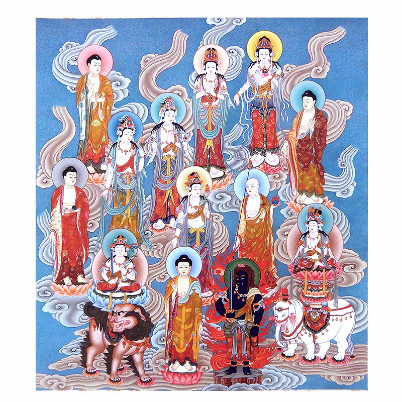 掛け軸 「十三仏」模表装 36x56cm 故人のご供養に 仏壇の代わりに 護持仏 仏画 佛 掛軸 新品 模軸 20342