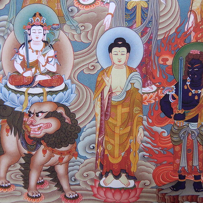 最短発送をご希望の場合、お買い物ステップにて【ご希望のお届け日時】を必ずご指定ください。楽天市場のシステム変更に伴い、ご指定がありませんと発送まで1週間以上かかる場合がございます。お手数をお掛けしますが、ご入力・ご指定くださいますようお願い申し上げます。 商品の詳細 -------------------------------------------- ご供養や護持仏、仏壇の代わりに 最も複雑な掛け軸の表装である「真の真(しんのしん)仕立て」を、華やかで高級感あふれる印象そのままに、模表装仕立てにて再現いたしました。 模表装仕立ては模軸ともいわれ、絵像部分と表装部分を一体式にて刷り上げた掛軸です。 -------------------------------------------- ■作品名:十三仏 ■技法: 模表装 掛け軸 ■外寸: 幅360x長さ560(mm) ■エディション番号:なし ■作品の状態:新品 本紙表装:新絹本、軸先:樹脂 紙箱入り -------------------------------------------- ■本作は、店頭及び他WEB店舗と同一の在庫を共有しておりますため、予告なく販売終了またはご注文後に在庫切れが発生する場合がございます。掛け軸「十三仏」模表装 ご供養や護持仏、仏壇の代わりに 最も複雑な掛け軸の表装である「真の真(しんのしん)仕立て」を、華やかで高級感あふれる印象そのままに、模表装仕立てにて再現いたしました。 模表装仕立ては模軸ともいわれ、絵像部分と表装部分を一体式にて刷り上げた掛軸です。