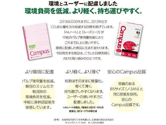 【商品説明】●にじみにくく、インクが裏に透けにくいコクヨオリジナル原紙を使用。●長期保存に適した中性紙です。【仕様】●サイズ:B5●タテ257×ヨコ182mm●穴数:26穴●罫内容:無地●枚数:150枚●紙質:上質紙●紙厚:70g/m2●丸穴●下敷き(厚紙)付き※下敷きには表面に横罫、裏面には方眼罫が入っています。●さらさら書けるタイプ【検索用キーワード】コクヨ キャンパスルーズスリーフ無地 B5 26穴 150枚 ノ−837WFN ノ837WFN KOKUYO リフィルファイル用 下敷き付き 厚紙付き (さらさら書ける) キャンパスルーズリーフ Campus こくよ コクヨ KOKUYO さらさらかける サラサラ書ける したじき付き 厚紙つき 白無地 無罫150枚バラ売り 1冊売り 1袋売り 1パック売り ノート・紙製品 ノート ルーズリーフ ルーズリーフ(B5) ルーズリーフ さらさら書ける B5タテ B5縦 B5たて B5サイズ 26穴 無地 150枚 RPUP_02 751847なめらかに、流れるような書き心地!