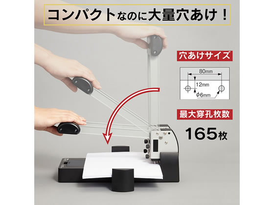 【商品説明】●力が入れやすいハンドルで、穴あけがスムーズ●紙の位置決めがしやすいワイドダブルゲージを採用。●取り外しカンタン!スライド方式のロットガード。●抜きカスが一目でわかる!透明屑受け。【仕様】●寸法:幅170×奥行338×高さ175mm●最大穴あけ枚数:165枚(15mm)●穴径:6mm80mmピッチ●穴奥行:9mm●重量:2.7kg●ワイドダブルゲージ付(紙幅137〜300mm)●付属品:パイプロット刃2本、ロットガード2枚(装着済み)【検索用キーワード】カール事務機 かーる事務機 カールジムキ かーるじむき キョウリョクパンチ きょうりょくぱんち 文房具 165枚 80mmピッチ K−10 K10 K−122 K122 124 1台 ペーパーパンチ センターゲージ付き カール事務器 CARL 大型パンチ 2穴パンチ 穴あけパンチ No122N No.122N 文具・事務用品 切る、貼る、留める用品 パンチ 大型 RPUP_07 701076まとめて一気に165枚。いろいろ使えるスタンダードな2穴。