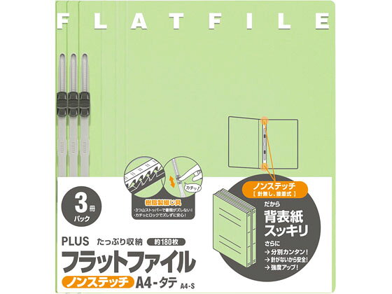 【ブラックフライデー限定★27日9:59迄店内ポイント2倍】プラス フラットファイル ノンステッチ A4タテ グリーン 3冊 NO.023NP 通常タイプ A4 フラットファイル 紙製 レターファイル