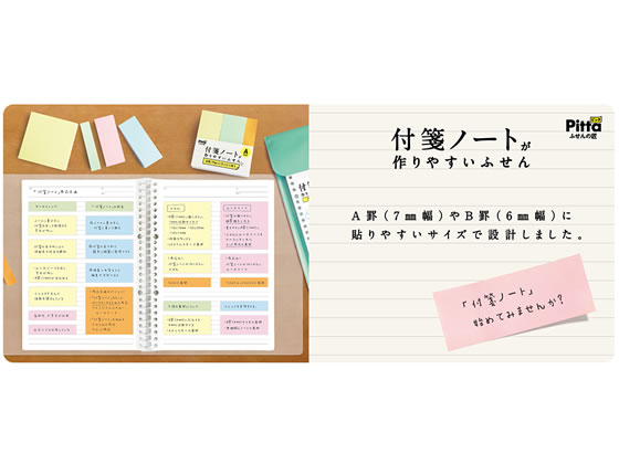 【商品説明】付箋に書いてノートに貼り、付箋の色や形で綺麗に整理でき、順番の入れ替えなど簡単に編集ができます。A罫(7mm幅)のノートやルーズリーフに貼りやすいサイズで設計しました。【仕様】●A罫用●枚数:1冊(100枚)●サイズ:70×70mm●カラー:ブルー、グリーン●注文単位:1パック(2冊)【備考】※メーカーの都合により、パッケージ・仕様等は予告なく変更になる場合がございます。【検索用キーワード】くらすたーじゃぱん C.L.C.JAPAN CLCJAPAN CLCジャパン C.L.C.ジャパン PITTA ぴった ピッタ ふせんの匠 ふせんがつくりやすいふせん フセンガツクリヤスイフセン 70×70mm 7mm幅用 ブルー グリーン パック売り ノート ルーズリーフ C−FNF−02 CFNF02 インデックス メモ ノートタイプふせん RPUP_05 R39924インスタグラムなどSNSで学生を中心に流行している「付箋ノート」。そんな「付箋ノート」を作りやすく考えた付箋。