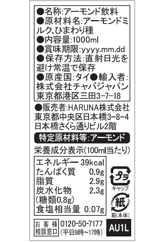 【仕様】ローストアーモンドを使用した香ばしくまろやかなアーモンドミルク。アーモンドそのものの自然な味わいをお楽しみください。●内容量:1000ml●乳成分・砂糖・香料不使用●注文単位:1本自然由来の原料を使用しているため成分表示部分が変更になる可能性がございます。【備考】※メーカーの都合により、パッケージ・仕様等は予告なく変更になる場合がございます。【検索用キーワード】はるなぷろでゅーす Haruna 137ディグリーズ 137でぃぐりーず 137℃degrees 137℃ディグリーズ 137℃でぃぐりーず あーもんどみるく ALMONDMILK 1L 1リットル 1000ml 1000ミリリットル 大容量 1本 R54821無添加濃厚ナッツミルク