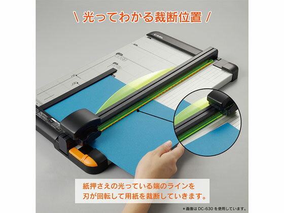 【商品説明】スライダーを下に押しながら滑らすだけのスライド式裁断機です。裁断位置は、集光式紙押さえ板によりカットラインが把握しやすく正確に裁断可能。紙押さえ板は、用紙全体を覆い上から均等な力が加わることで用紙を抑制。紙あて定規は滑り止めをつけたことでズレにくくなっています。また、紙あて定規はスライダーレールの左右どちらの板面にも設置可能なので短冊切り等も効率よく正確に裁断可能です。【仕様】●サイズ:幅304×奥行513×高さ79mm●重量:2.2kg●裁断能力:丸刃20枚(1往復目安)、ミシン目刃3枚(1スライド/※別売)●裁断幅:430mm(A3サイズ)●材質:SPCC、ABS●紙あて定規付き●対応消耗品:(丸刃)DCC−28、(ミシン目刃)DCC−29、(フッ素コート丸刃)K−18、(カッターマット)DCM−430●注文単位:1台【検索用キーワード】カール事務器 カール事務機 カール CARL かーるじむき かーる ディスクカッターA3サイズ でぃすくかったーA3さいず 文房具 デスクカッター A3ペーパーカッター ロータリーカッター 裁断機 断裁機 DC−630 DC630 スライド式 集光式紙押さえ板 20枚切り A3判 A3サイズ対応 切る貼る留める用品 替刃 DCM−430 DCC−29 DCC−28 K−18 1台 RPUP_02 R72605【A3サイズ対応】短冊切りも効率よく裁断可能。