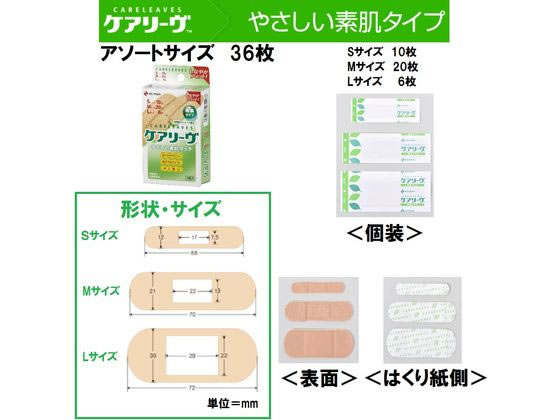 【レビュー投稿で100円OFFクーポン】ニチバン ケアリーヴ アソート(Sサイズ10枚、Mサイズ20枚、Lサイズ6枚) キズバンド ケガ 傷 メディカル