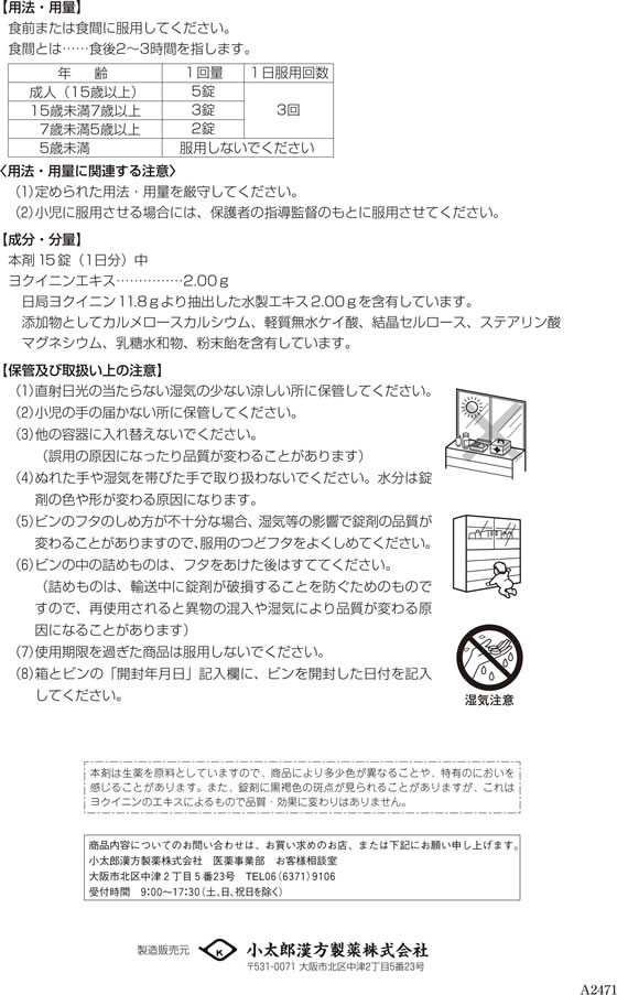 【ブラックフライデー限定★27日9:59迄店内ポイント2倍】【第3類医薬品】薬)小太郎漢方製薬 ヨクイニンS コタロー 720錠 錠剤 肌関連 漢方薬 生薬 医薬品