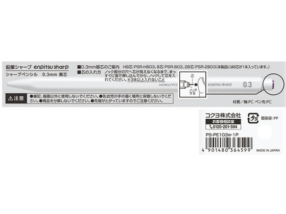 【レビュー投稿で100円OFFクーポン】コクヨ 鉛筆シャープ 0.3mm 白 PS-PE103W-1P シャーペン本体 シャープペンシル