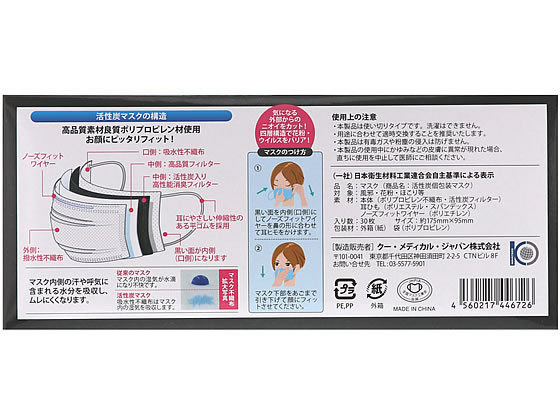 【楽天大感謝祭限定★26日9:59迄ポイント2倍】クー・メディカル・ジャパン 活性炭入り四層マスク 30枚 289274 マスク 鼻 のど対策 メディカル