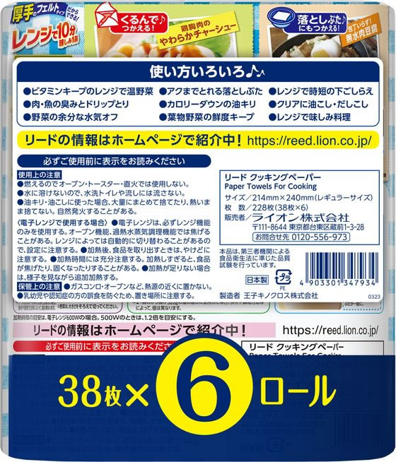 【レビュー投稿で100円OFFクーポン】ライオン リード クッキングペーパー ダブル 38枚×6ロール ペーパータイプ キッチンペーパー キッチン消耗品