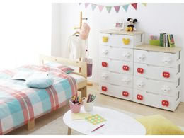 【商品説明】引出しには開閉がスムーズな金属レールを採用しています。【仕様】●仕様:ミッキー●商品サイズ(約):幅56×奥行43×高さ100cm●引出し内寸(約):47.5×36×14.5cm●重量(約):13.5kg●耐荷重(約):天板10kg、引出し1段あたり4kg●材質:天板/合成樹脂化粧繊維板(塩化ビニル樹脂・MDF)、本体・引出・フレーム/ポリプロピレン、前パネル/ポリプロピレン、取手/ABS樹脂、レール/スチール【備考】※メーカーの都合により、パッケージ・仕様等は予告なく変更になる場合がございます。【検索用キーワード】アイリスオーヤマ あいりすおーやま IRISOHYAMA キッズチェスト5段幅55cmミッキー キッズチェスト 5段 幅 55cm ミッキー きっずちぇすと5だんはば55せんちめーとるみっきー キッズチェスト5ダンハバ55センチメートルミッキー 子供用収納 合成樹脂化粧繊維板 塩化ビニル樹脂 MDF ポリプロピレン ABS樹脂 スチール 1台 キッズカラー ミッキーデザイン MHG2−555 MHG2555 衣替え 整理整頓 収納 可愛い カワイイ かわいい ディズニー でぃずにー Disney 収納家具 子供用 R6989Rミッキーをモチーフにした可愛らしい取っ手のキャラクターチェストです