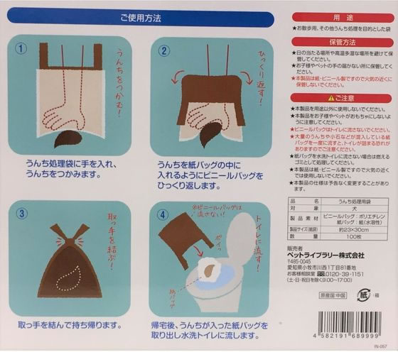 【レビュー投稿で100円OFFクーポン】ペットライブラリー 取っ手の付いたうんちパック100枚 共通トイレ ペット トイレタリー