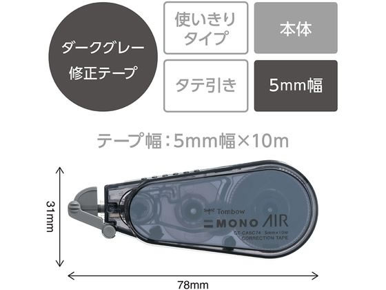 【レビュー投稿で100円OFFクーポン】トンボ鉛筆 修正テープ モノエアー5 5mm ダークグレー CT-CA5C74 使い切りタイプ 修正テープ