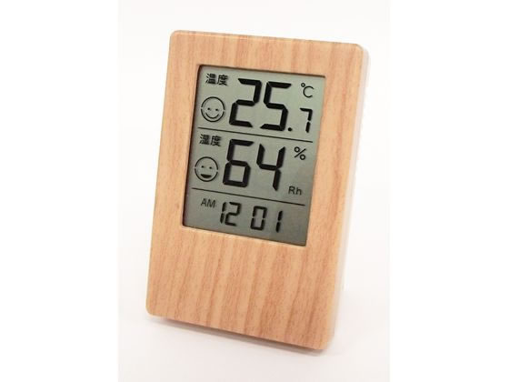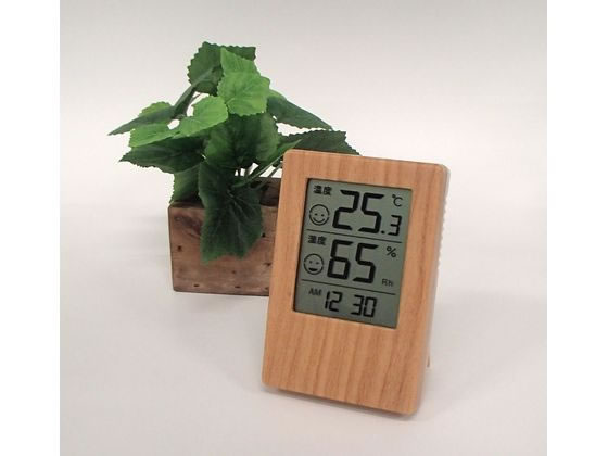 【商品説明】6パターンの顔アイコンでお部屋の状態を示します。快適な温度と湿度がひとめでわかる。卓上用スタンド付。裏面マグネット付。壁掛け用穴付。お部屋のインテリアにもマッチする木目調。小型で場所をとらない。携帯しやすく、外出先の温湿度測定にも便利。デジタル機能時計付。(AM・PM12時間表示)電池残量表示で電池交換のタイミングがわかる。【仕様】●本体寸法:約90×60×18mm●重量:約68g(電池含む)●材質:本体/ABS樹脂●測定温度湿度範囲:温度/−9.9〜50.0度、湿度/20〜95%Rh(ただし氷結や結露しないこと)●表示分解能:温度/0.1度●湿度/1%Rh●精度:温度/±1.0度(−9.9〜40.0度)±1.5度(40.1〜50.0度)、湿度(常温時)/±5%(35〜85%)±10%(20〜34%、86〜95%)●時計:12時間表示(月差±30秒以内)●測定間隔:約10秒●電源・電池寿命:単4乾電池1個・約1年(アルカリ電池※別売り)●付属品:単4乾電池1個(動作確認用)【備考】※メーカーの都合により、パッケージ・仕様等は予告なく変更になる場合がございます。【検索用キーワード】クレセル くれせる CRECER 木目調 時計付き 時計付 デジタル 温湿度計 温度計 湿度計 時計付 デジタル時計 1個 大文字 見やすい 大画面 壁掛け 壁掛け穴 置き型 スタンド スタンド付 フック 卓上 卓上スタンド マグネット 磁石 小型 顔アイコン 持ち運び 携帯 インテリア 雑貨 小物 デスク 温度測定 湿度測定 温度 湿度 測定 温湿度 時計・温湿度計 温度計、湿度計 R380GM顔アイコンでお部屋の状態をお知らせ