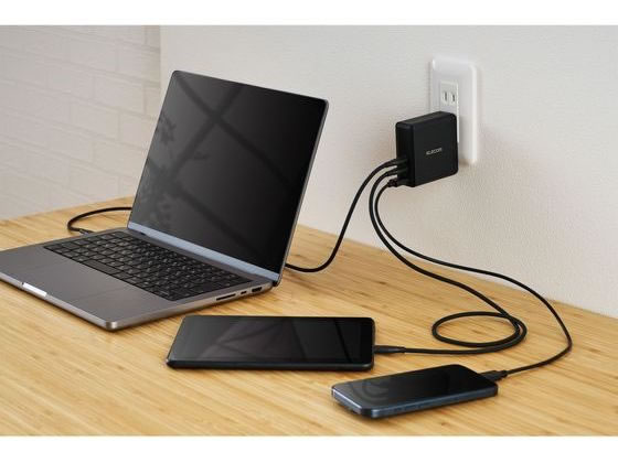 【商品説明】●USB Power Delivery EPR最大140W(28V/5A) 出力対応USB AC充電器です。16インチMacBook Proを30分でゼロから50%まで高速充電可能です。 ※単ポート接続時、16インチMacBook Proに同梱のUSB-C - MagSafe 3ケーブルを使用の場合【仕様】●対応機種:各USB Type−C(TM)ポートからUSB Power DeliveryおよびPPS 100W、USB Power Delivery EPR 140W、またはUSB−Aポートから12Wの規格内で充電可能なノートパソコン、スマートフォンなどの機器。2ポート以上同時接続時、合計最大132Wまでの出力で充電・給電可能な機器とその組合せ。●コネクター形状:USB Type−Cポート×2、USB−Aポート×1●定格入力電圧:AC100〜240V、50/60Hz●定格入力電流:2.0A●定格出力電力(単独接続時):USB Type−C1/USB Type−C2ポート:最大出力140W、PPS最大出力100W、USB−A1ポート:最大出力12W●定格出力電力(2ポート同時接続時(1)):USB Type−C1+USB Type−C2ポート:合計最大出力130W、USB Type−C1/C2ポート最大出力65W、PPS最大出力65W●定格出力電力(2ポート同時接続時(2)):USB Type−C1/C2+USB−A1 ポート:合計最大出力112W、USB Type−C1/C2ポート最大出力100W、PPS最大出力100W、USB−A1ポート最大出力12W●定格出力電力(3ポート同時接続時(1)):合計最大出力132W、USB Type−C1/C2ポート最大出力60W、PPS最大出力60W、USB−A1ポート最大出力12W●定格出力電圧(単独接続時):USB Type−C1ポート/USB Type−C2ポート:5V/9V/12V/15V/20V/28V、PPS出力5〜21V、USB−A1ポート:5V●定格出力電圧(2ポート同時接続時(1)):USB Type−C1+USB Type−C2ポート:USB Type−C1/C2ポート:5V/9V/12V/15V/20V、PPS出力5〜21V●定格出力電圧(2ポート同時接続時(2)):USB Type−C1/C2+USB−A1ポート:USB Type−C1/C2ポート:5V/9V/12V/15V/20V、PPS出力5〜21V、USB−A1ポート:5V【備考】※メーカーの都合により、パッケージ・仕様等は予告なく変更になる場合がございます。【検索用キーワード】エレコム ELECOM えれこむ ACDC−PD96140BK ACDCPD96140BK 充電器 AC充電器 USB充電器 ACアダプタ Type−C USB−C USB Type−C TypeC タイプC USB PD EPR 140W USB−A MacBook Pro 16インチ Windows PC iPad iPhone Pixel Galaxy Android スマホ acアダ゛プタ 携帯充電器 急速充電器 c 100w 急速 コンセント ポータブル充電器 ブラック PC用品 PCアクセサリー R832KA16インチMacBook Proを高速充電!USB Power Delivery EPR 140W出力のUSB AC充電器。