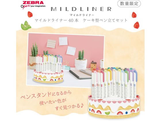 【スーパーSALE限定2,000円クーポン&11日9:59迄ポイント2倍】 ゼブラ マイルドライナー40本 ケーキ型ペン立てセット WKT7-40-CAKE マイルドライナー 水性ペン 水性マーカー