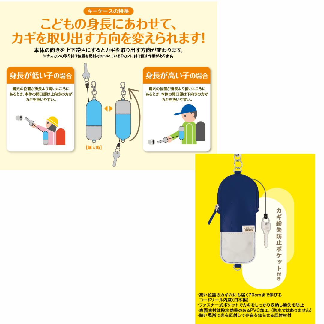 商品情報サイズ65×140×10mm仕様ナイロン(PVC加工)、ナイロン、面ファスナー式ベルト、コードリール(70cm)、反射材、ナスカン、Dリング(2)パイロット キーケース 【CRKY-04】 リール付 鍵 紛失防止 ランドセル 小学生 子ども 学童 習い事 リュック 便利 扱いやすい 安全 リール内蔵 小学校 女性 男性 ◇鍵の紛失防止するファスナー式収納(※カラーをお選びください) ・4種類のカラーの中からお好きなカラーをお選びください・高い位置の鍵穴にも届く70cmまで伸びるコードリール内蔵(日本製)・ファスナー式ポケットで鍵をしっかり収納し紛失を防止・表面素材は撥水効果のあるPVC加工(防水ではありません)・暗い場所で光を反射して存在を知らせる反射材付 5