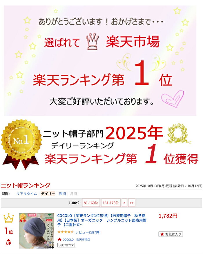 COCOLO【楽天ランク1位獲得】【医療用帽子 秋冬春用】【日本製】オーガニック シンプルニット医療用帽子 【二重仕立て】【メール便送料無料】メンズ 男性 レディース 女性 抗がん剤帽子 脱毛 手術後 薄毛 白髪 隠し 就寝 がん コットン ナイトキャップ アトピー 皮膚炎