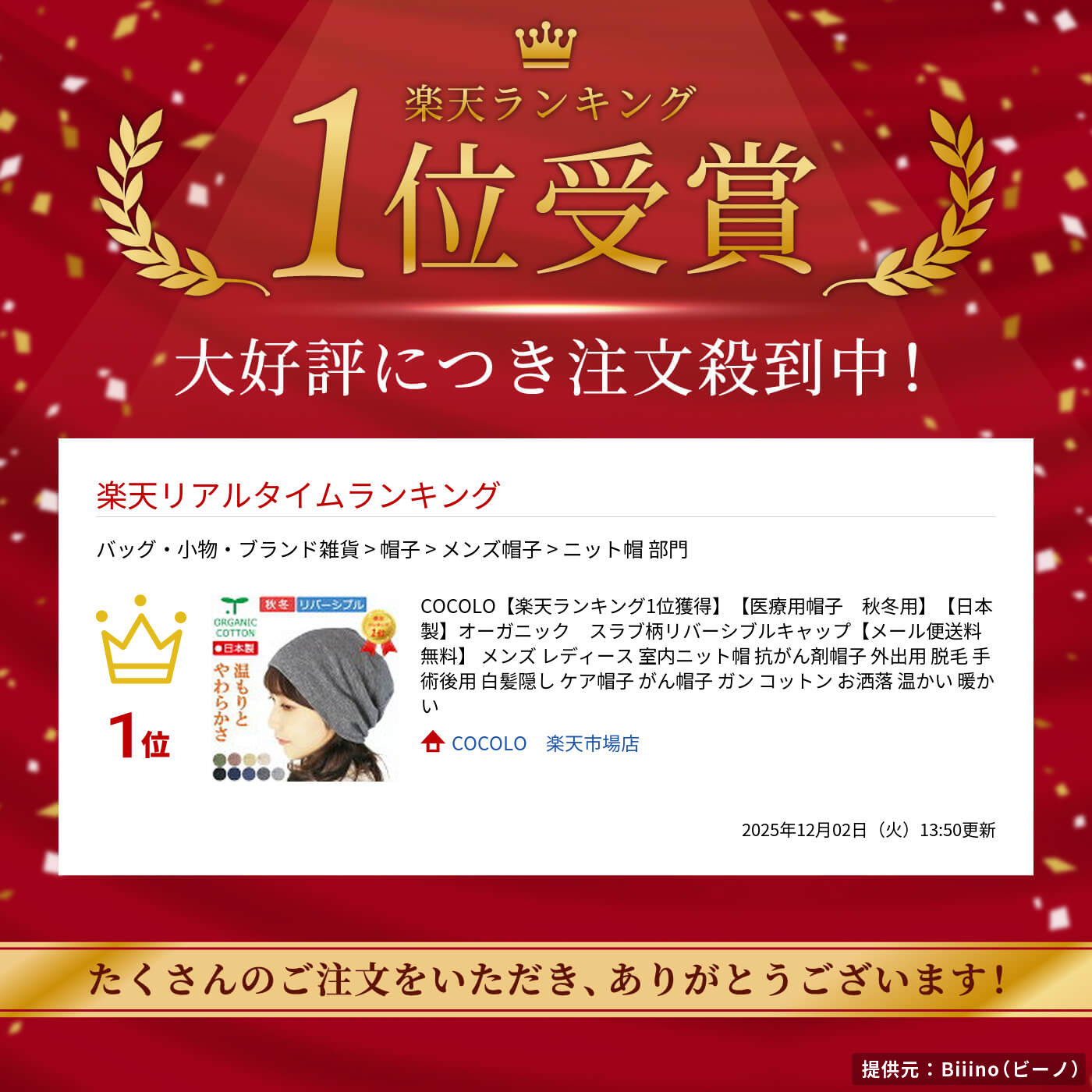 COCOLO【楽天ランキング1位獲得】【医療用帽子 秋冬用】【日本製】オーガニック スラブ柄リバーシブルキャップ【メール便送料無料】 メンズ レディース 室内ニット帽 抗がん剤帽子 外出用 脱毛 手術後用 白髪隠し ケア帽子 がん帽子 ガン コットン お洒落 温かい 暖かい