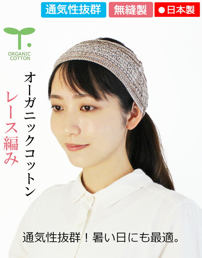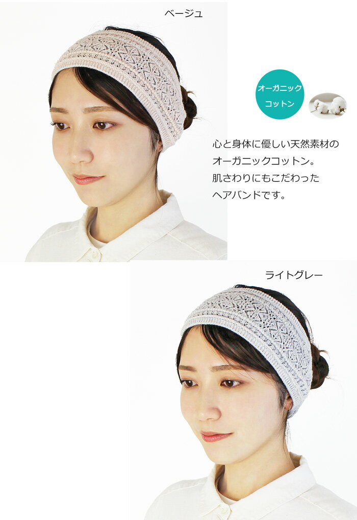COCOLOヘアバンド オーガニック レース編み【無縫製】【日本製】【メール便送料無料】シームレス 綿 コットン 春 夏 秋 薄手 薄い 通気 敏感肌 アトピー 皮膚炎 お洒落 可愛い
