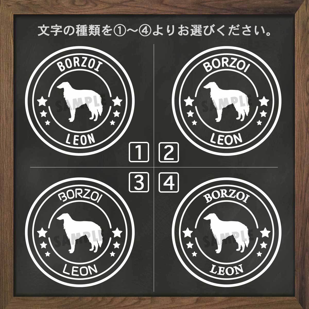 【400円OFFクーポン配布中】 ボルゾイ ステッカー シール 犬 車 名前 名前入り 多頭 オーダーメイド 車用 シルエット ペット 玄関 表札 星 丸 名入れ オリジナル おしゃれ シンプル かわいい かっこいい ドッグインカー 可愛い オシャレ スーツケース