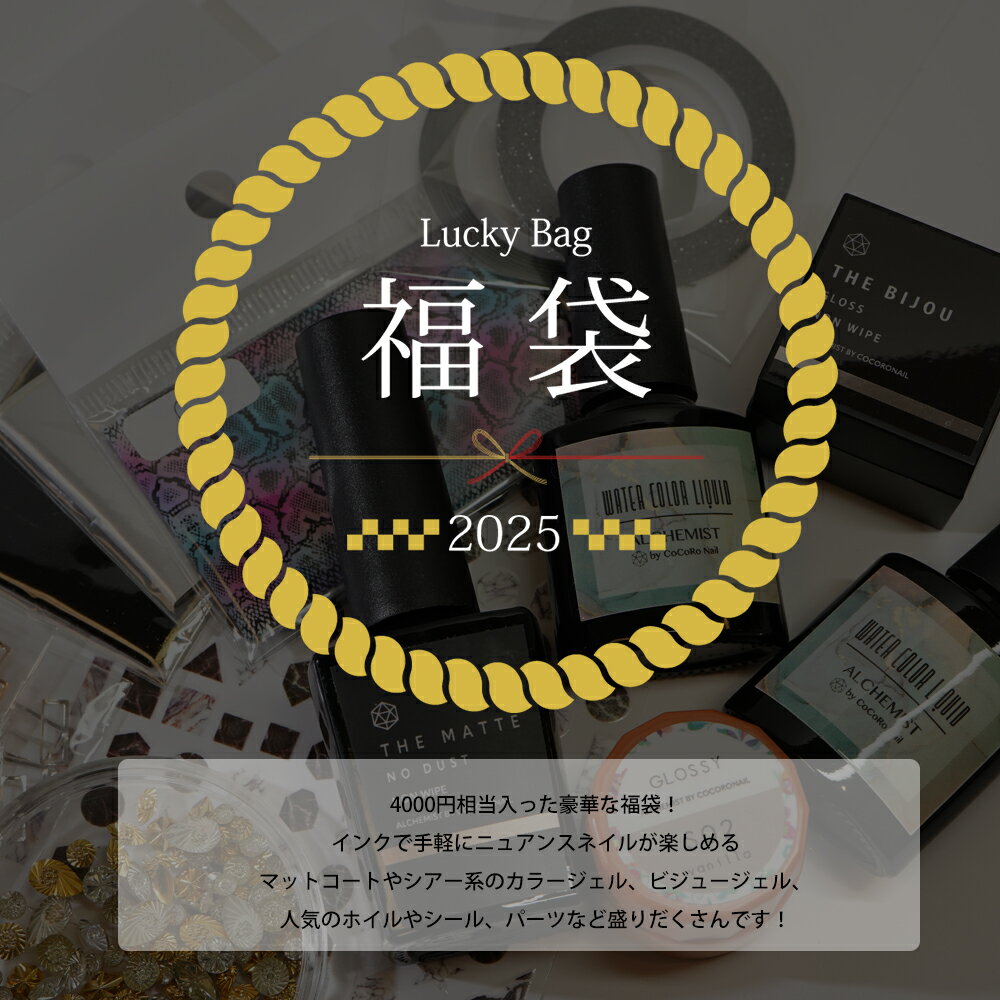 商品詳細商品名 1980円福袋 ニュアンスネイルver. 内容量 4000円相当 ウォーターカラーリキッド3本 ノンワイプマットコート1本 ビジュージェル1個 シアーカラージェル3g シール3種 パーツセット1個 ネイルパーツ2種 ホイル類3種 バリエーション - 商品説明 毎年ランキング入りのCoCoRo Nailの福袋! 定番ニュアンスネイル系のアイテムをお得に詰めました 2025年バージョンはインクのベースに必須なマットコートを入れて、 パーツを強力に接着できるビジュージェルも追加! さらにニュアンス系に使えるシアーカラージェルも1色入れました! 発色や色味が綺麗なウォーターカラーリキッドや大人気のホイルなど いつもヘビーに使える大人系アイテムばかりです!通常4000円相当入って1980円です! ※複数ご購入された場合、色が被る可能性があります。 ※なくなり次第終了させていただきます。 ※不良品以外の理由での返品交換は受け付けておりません。 ※全てのカラーはランダムになります。 ジェル に関して: ※一部商品は化粧品ではありません。ベースジェル(化粧品)の上から使用し自爪や肌に直接塗布しないでください ※異常が現れた場合や万が一目に入ったり飲み込んだりした場合はすぐに使用を中止し医師に相談してください ※幼児の手の届かない場所に保管してください ※保管場所の注意、高温多湿、直射日光の当たる場所、火気厳禁です。 ※塗布量によりカラー紹介画像とは異なる発色になる場合がございます。 ※カラーの発色は、肌や爪の色により個人差があります。 ※塗布量が多い場合、ライトが消耗して出力不足など、硬化不良を起こしますので1度の塗布量と硬化時間にお気を付けください。 ※幼児の手の届かない場所に保管してください ※お使いのモニターの環境により実物の商品と見た目の色に多少違いがある場合がございます。 ※他サイト間で在庫を共有しているため、更新のタイミングによっては実在庫に相違が出る場合がございます。 万が一在庫切れや入荷待ちとなる場合は別途メールにてご連絡いたします。 使用方法 画像参照 広告分責 ジェル:雑貨品 Made in China (沖縄へは航空機搭載不可、陸送のため+5日前後お日にちがかかります) 配送方法 メール便(クロネコゆうパケット)可 ※沖縄へは陸送便となります。到着までにお日にちが+5日から10日かかる場合がございます。(パウダー類、ジェル、液体が含まれた場合は全て)