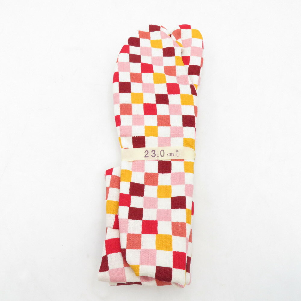 柄足袋 23.0cm 白・暖色系 市松柄 底面白色 日本製 たびや 一輪館 綿100% 4枚こはぜ レディース 女性用 足袋 カジュアル 新品