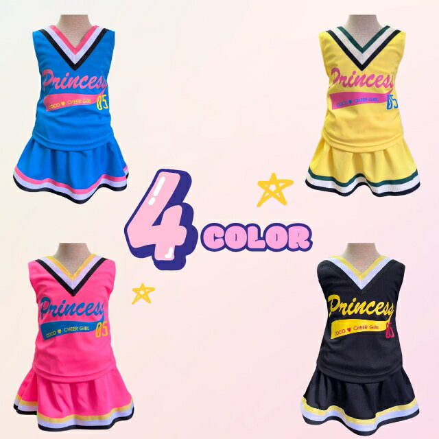 ダンス衣装 チアダンス 衣装 チア セットアップ 上下セット BHABY-01[キッズ ダンス チアガール 衣装 チア リーディング ウェア チーム ユニフォーム チアダン 服 子供 こども 黒 ピンク 黄色 イエロー 青 ブルー 韓国子供服]