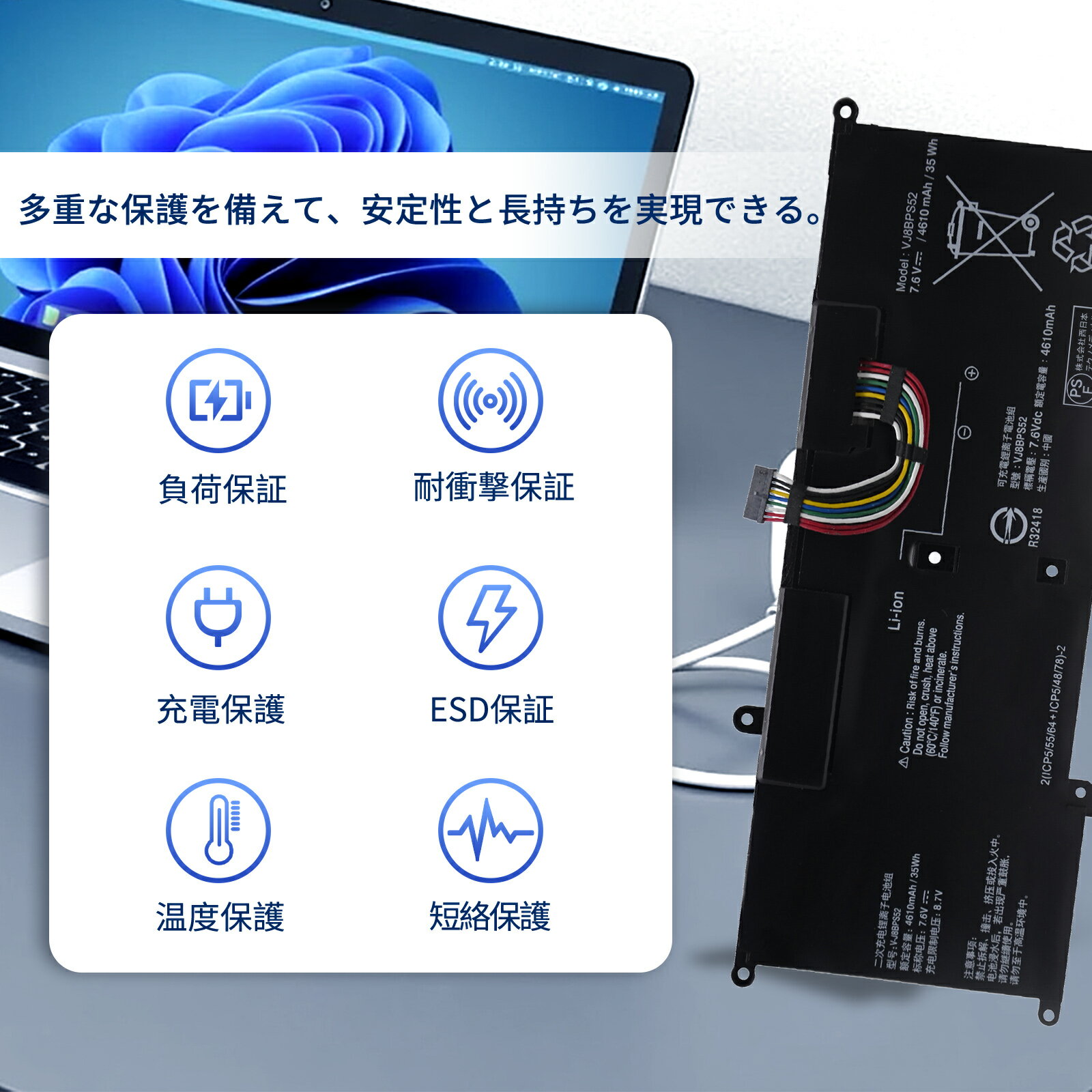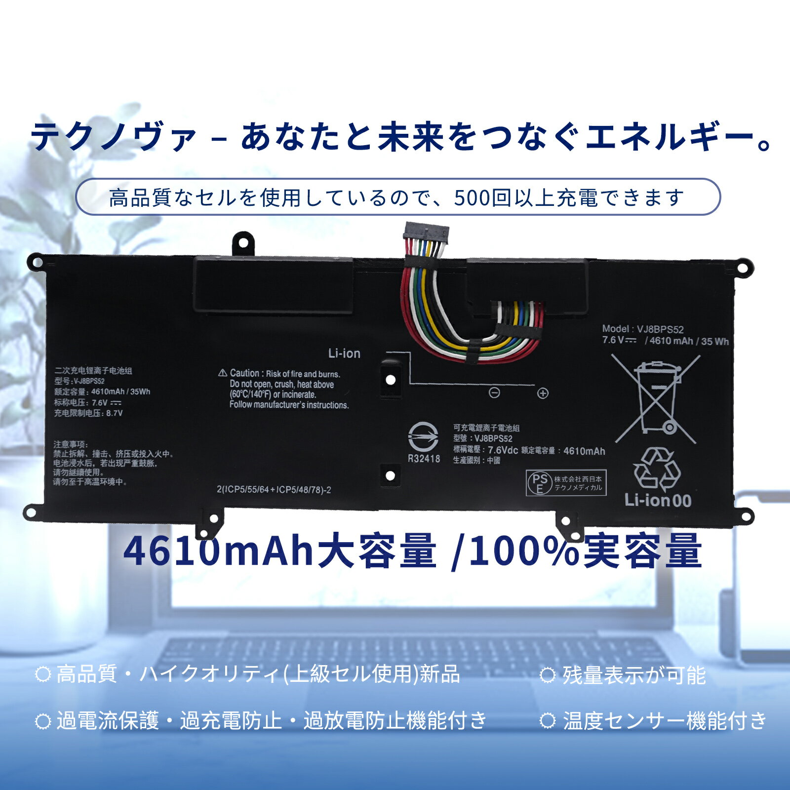 【10倍ポイント】楽天3位獲得 新品 VAIO VJ8BPS52 互換バッテリー【4610mAh 7.6V】対応用 1年保証 高性能 互換バッテリパッA