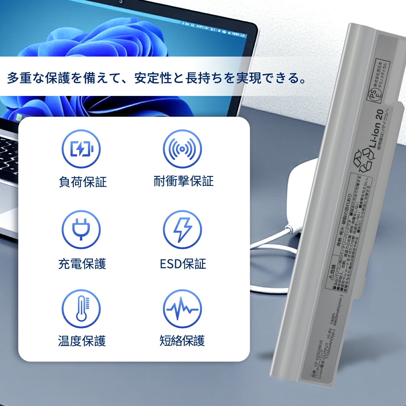 ●ブランド: Panasonic ●電圧: 10.8V ●容量: 6800mAh ●純正品型番(充電池コード): CF-VZSU90JS ●対応機種: CF-LX3 CF-LX4 CF-LX5 CF-LX6 ●メーカー型番: LBPANSU90JSBK06-AAE-YBLXI CF-LX6 ※この商品は互換用バッテリーです。 注意点: ●同じ性能で金額の異なる商品がございますが、製造元部品が異なるためであり、性能には一切違いはありません。ご安心ください。 ●多店舗で同時に販売するため、商品が一時的に欠品となる場合がございます。他の契約倉庫から出荷の手配を依頼することになり、発送日がまだ未確定で、ハッキリとご案内できませんので、弊社の出荷予定時間を参考にしてください。 ●当店でご購入された商品は、日本国内からお客様のもとへ直送されます。 ●一部商品は国内の提携先倉庫から配送されます。 ●製造年月及び製品の世代更新でpse申告業者も変わっています。品質的には問題ございませんので、ご安心ください。 ●PSEマークの種類:PSE ●届け出事業者名:株式会社西日本テクノメディカル ●個人輸入される商品は、全てご注文者自身の「個人使用?個人消費」が前提となりますので、ご注文された商品を第三者へ譲渡?転売することは法律で禁止されております。 ●国内配送の商品は国内でのお買い物と同じく消費税が発生いたします。 ●日付指定がなければ最短で出荷します。 ●本体機種の型番と純正バッテリーの型番は両方が一致していない場合、使用できない可能性があります。 ●ご購入前に、何かご不明点やご希望などございましたら、どうぞお気軽にお問合せ下さいませ。