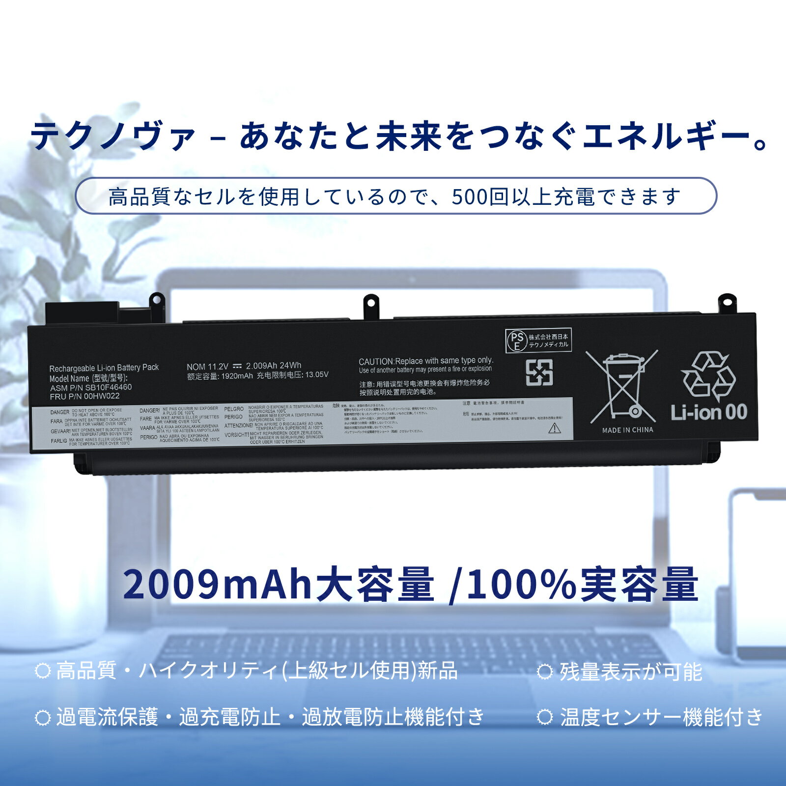 【1050円OFF&P10倍】新品 LENOVO ThinkPad T470s (20HF004UGE) 互換バッテリー【2009mAh 11.2V】対応用 1年保証 高性能 PSE認証 互換バッテリパック YCC 1220 2025CC-XIJPA