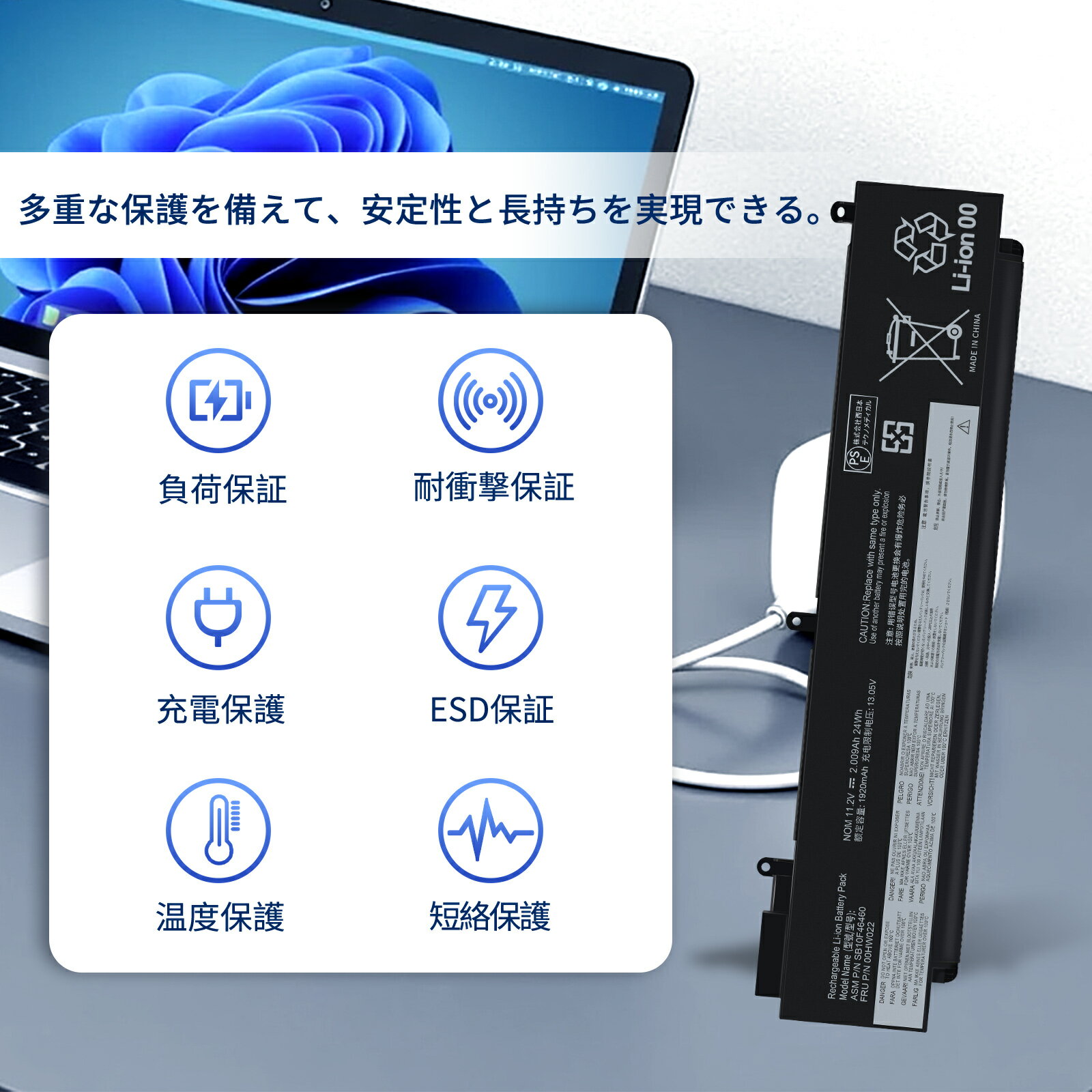 ●ブランド: LENOVO ●電圧: 11.2V ●容量: 2009mAh ●純正品型番(充電池コード): 00HW022, 00HW023, 00HW036 SB10F46460, SB10F46461, SB10F46474 ●対応機種: T460s-2MCD, T460s-2NCD, T460s-2PCD, T460s-2RCD, T460s-2YCD, T460s-31CD, T460s-32CD, T460s-33CD, T460s-34CD, T460s-3UCD, thinkpad T460s, ThinkPad T460s(20F9-001QAU), ThinkPad T460s(20F9-0026AU), ThinkPad T460s(20F9-003MAU), ThinkPad T460s(20F9002YCD), ThinkPad T460s(20F9A02MCD), ThinkPad T460s(20F9A02NCD), ThinkPad T460s(20F9A02PCD), ThinkPad T460s(20F9A02RCD), ThinkPad T460s(20F9A031CD), ThinkPad T460s(20F9A032CD), ThinkPad T460s(20F9A033CD), ThinkPad T460s(20F9A034CD), ThinkPad T460s(20F9A03UCD), ThinkPad T460s(20FA-001AAU), ThinkPad T460s(20FA-001BAU), ThinkPad T460s(20FA-001EAU), ThinkPad T460s(20FA-001FAU), ThinkPad T460s(20FA-0026AU), ThinkPad T460s(20FA-002UAU), ThinkPad T460s(20FA-003YAU), ThinkPad T460s(20FA-A01EAU), ThinkPad T460s(20FA-A01GAU), ThinkPad T460s(20FA-S05A01), ThinkPad T460s(20FA-S0BM00), ThinkPad T460s(20FA-S0KD00), ThinkPad T460s(20FA-S0KE00), ThinkPad T460s(20FA-S0NF00), ThinkPad T460s(20FA-S11300), ThinkPad T470s, ThinkPad T470s (20HF0000GE), ThinkPad T470s (20HF0001GE), ThinkPad T470s (20HF0016GE), ThinkPad T470s (20HF0047GE), ThinkPad T470s (20HF004UGE), ThinkPad T470s-20HGS00V00 ●メーカー型番: LBLENHW022XBK03-ABY-YCCXI ThinkPad T470s (20HF004UGE) ※この商品は互換用バッテリーです。 注意点: ●同じ性能で金額の異なる商品がございますが、製造元部品が異なるためであり、性能には一切違いはありません。ご安心ください。●製造年月及び製品の世代更新でpse申告業者も変わっています。品質的には問題ございませんので、ご安心ください。 ●PSEマークの種類:PSE ●届け出事業者名:株式会社西日本テクノメディカル ●多店舗で同時に販売するため、商品が一時的に欠品となる場合がございます。他の契約倉庫から出荷の手配を依頼することになり、発送日がまだ未確定で、ハッキリとご案内できませんので、弊社の出荷予定時間を参考にしてください。 ●当店でご購入された商品は、日本国内からお客様のもとへ直送されます。 ●一部商品は国内の提携先倉庫から配送されます。 ●個人輸入される商品は、全てご注文者自身の「個人使用?個人消費」が前提となりますので、ご注文された商品を第三者へ譲渡?転売することは法律で禁止されております。 ●国内配送の商品は国内でのお買い物と同じく消費税が発生いたします。 ●日付指定がなければ最短で出荷します。 ●本体機種の型番と純正バッテリーの型番は両方が一致していない場合、使用できない可能性があります。 ●ご購入前に、何かご不明点やご希望などございましたら、どうぞお気軽にお問合せ下さいませ。
