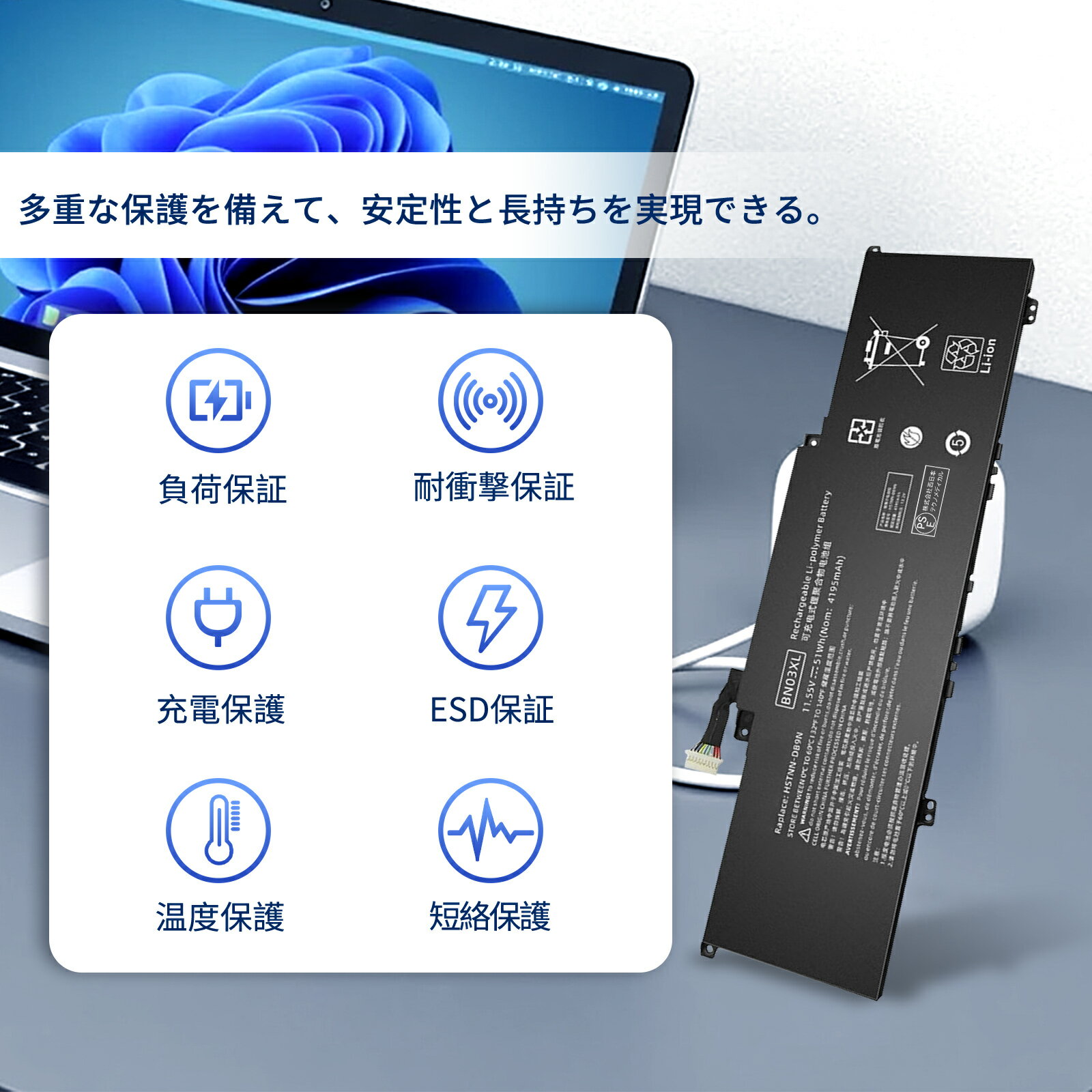 【1050円OFF&P10倍】新品 HP BN03XL 互換バッテリー【4195mAh 11.55V】対応用 1年保証 高性能 PSE認証 互換バッテリパック YCU 359 2025CU-XIJPA
