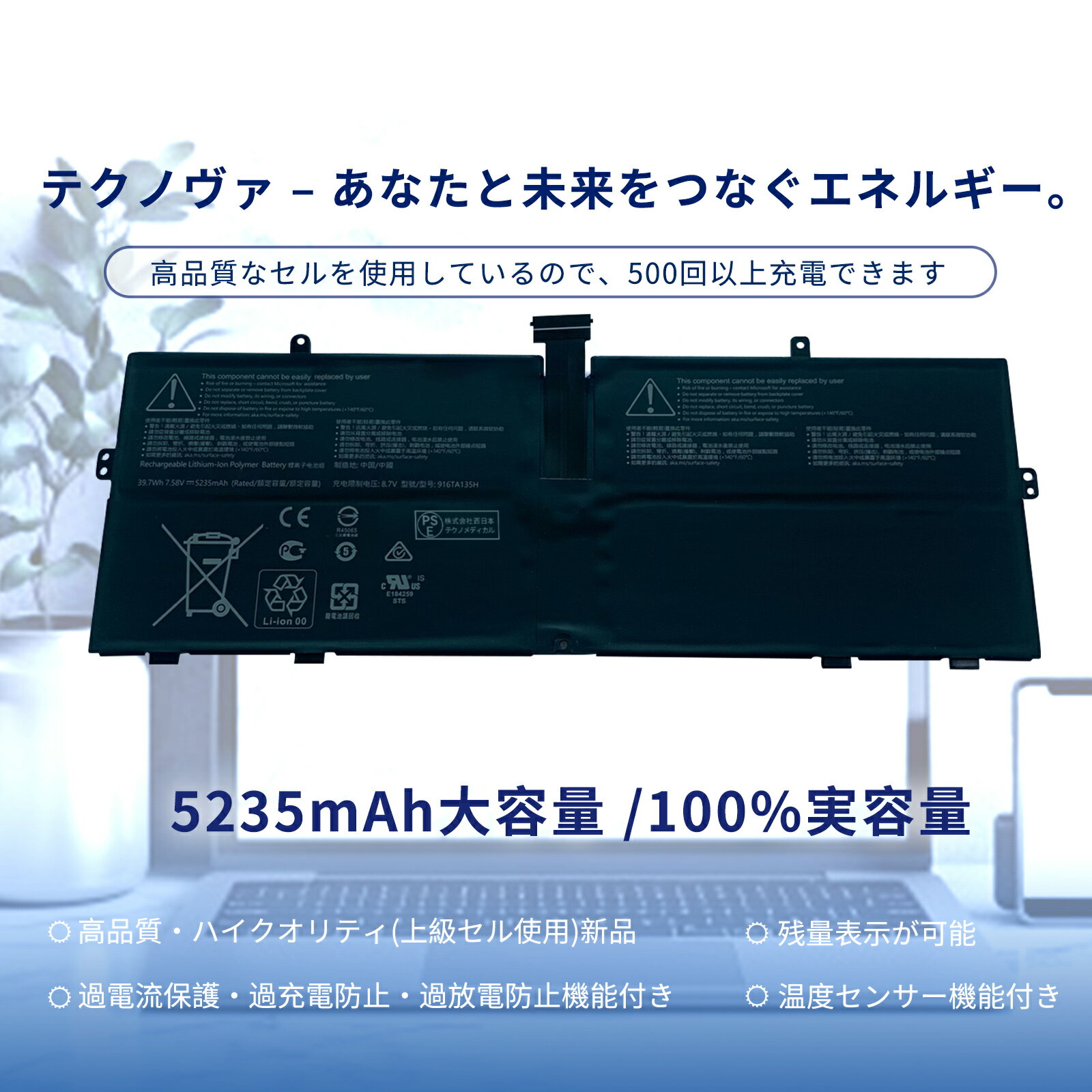 【1110円OFF&P10倍】新品 Surface 916TA135H 互換バッテリー【5235mAh 7.58V】対応用 1年保証 高性能 PSE認証 互換バッテリパック YCU 39 2297FC-XIJP